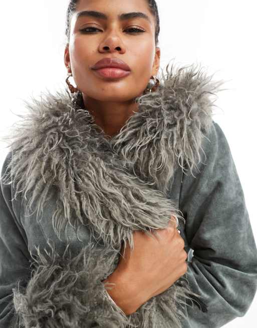 Daisy Street faux suede afghan coat in charcoal Very well made.