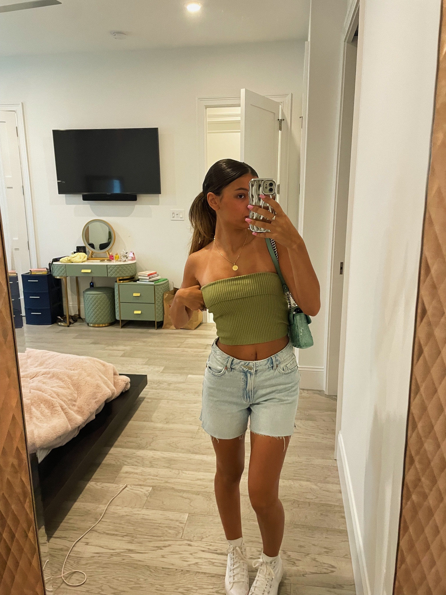 Mid thigh store jean shorts Very well made.